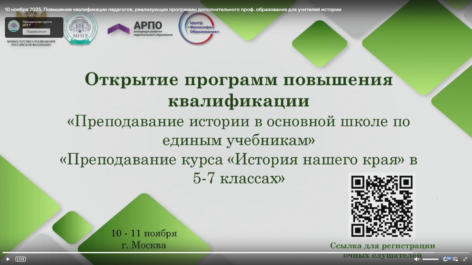 10 ноября 2025 года в Московском педагогическом государственном университете (МПГУ) состоялось знаковое событие для системы отечественного образования - открытие программ повышения квалификации «Преподавание истории в основной школе по единым учебникам» и «Преподавание курса «История нашего края» в 5-7 классах».