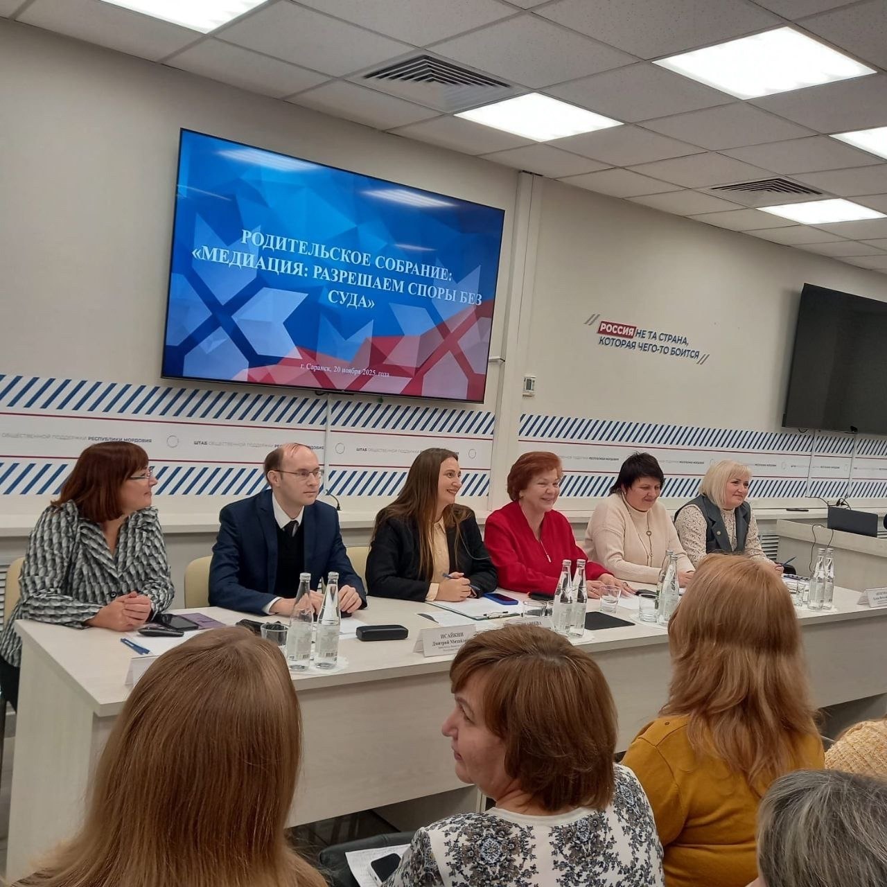 20 ноября 2025 года, в рамках мероприятий Всероссийского Дня правовой помощи детям, в Штабе общественной поддержки партии «Единая Россия» прошло родительское собрание на тему «Медиация: разрешаем споры без суда».