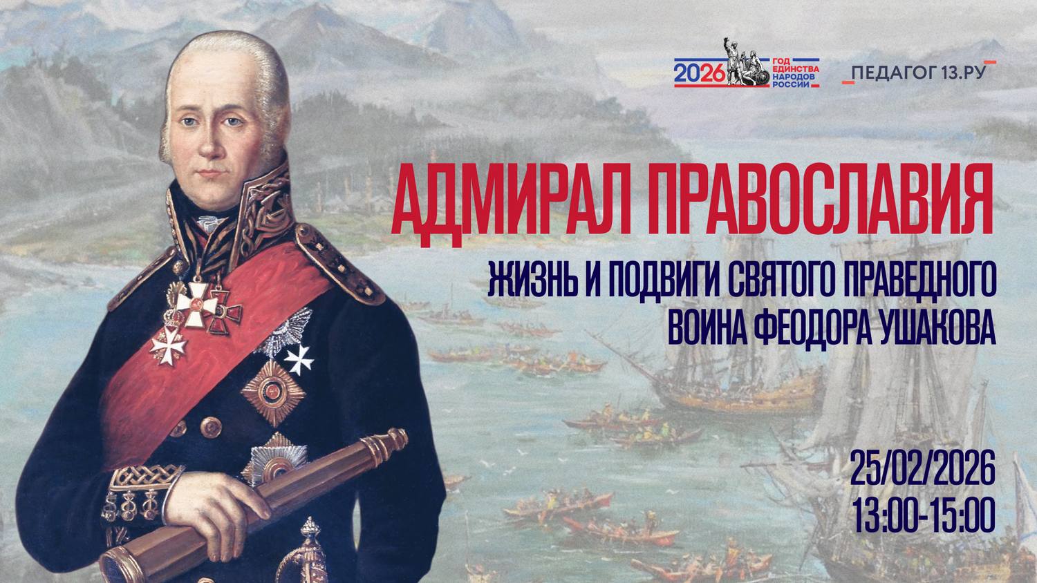 Центр «Педагог 13.ру» приглашает педагогических работников дошкольных, общеобразовательных и профессиональных образовательных организаций принять участие в круглом столе «Адмирал Православия: жизнь и подвиги святого праведного воина Феодора Ушакова».