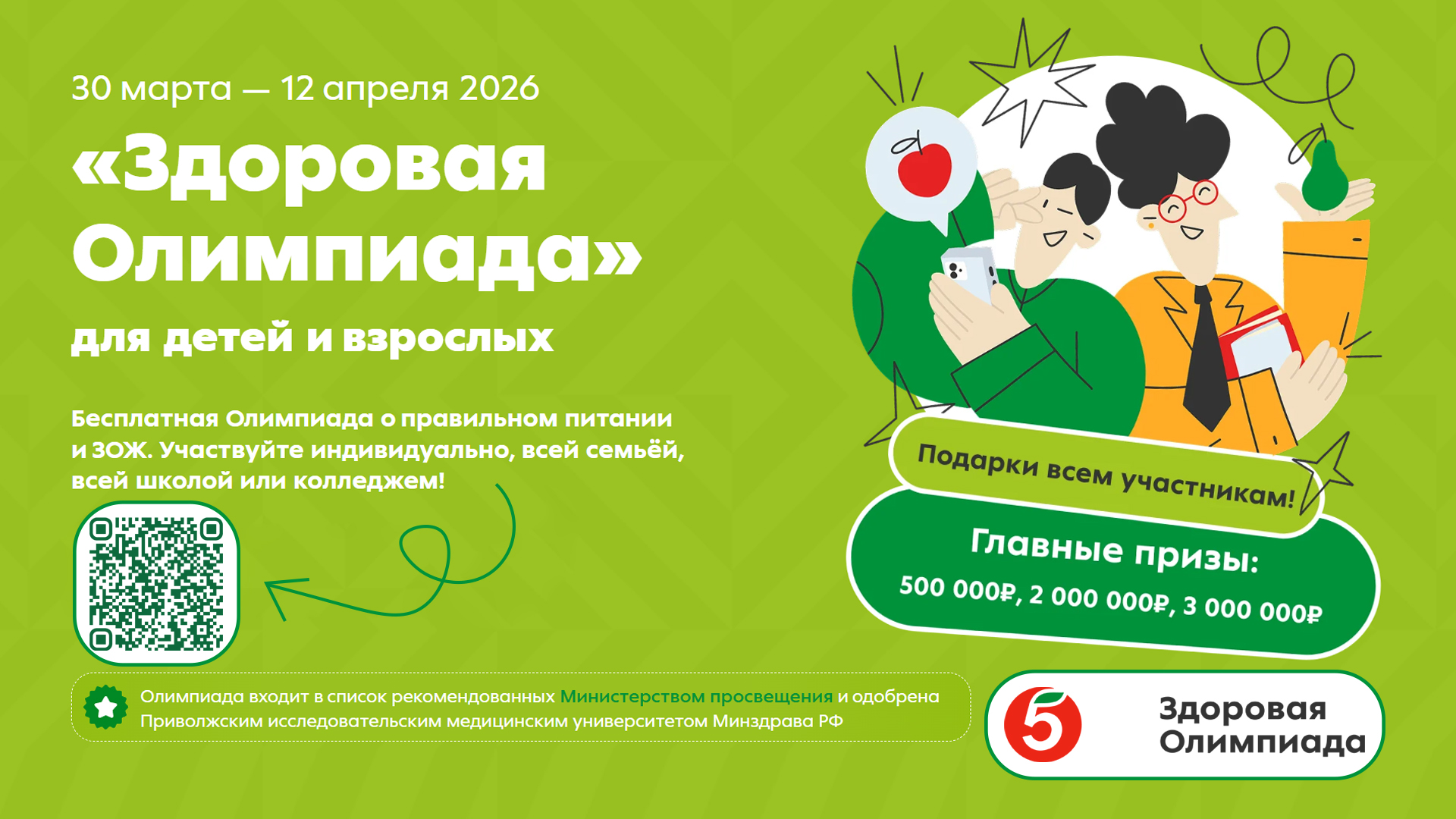 «Здоровая Олимпиада» пройдет с 30 марта по 12 апреля в онлайн-формате на сайте: https://здоровая-олимпиада.рф. К участию приглашаются школьники 7–18 лет, студенты организаций СПО, а также их родители и любые другие взрослые. Олимпиада носит семейный характер. Для прохождения заданий требуется регистрация. Памятка по регистрации: https://disk.yandex.ru/d/G_mxpIpClq9RXw.