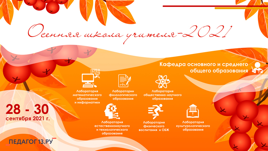 Кафедра основного и среднего общего образования ГБУ ДПО РМ «ЦНППМ «Педагог 13.ру» организует Республиканский педагогический марафон «Осенняя школа учителя -2021».