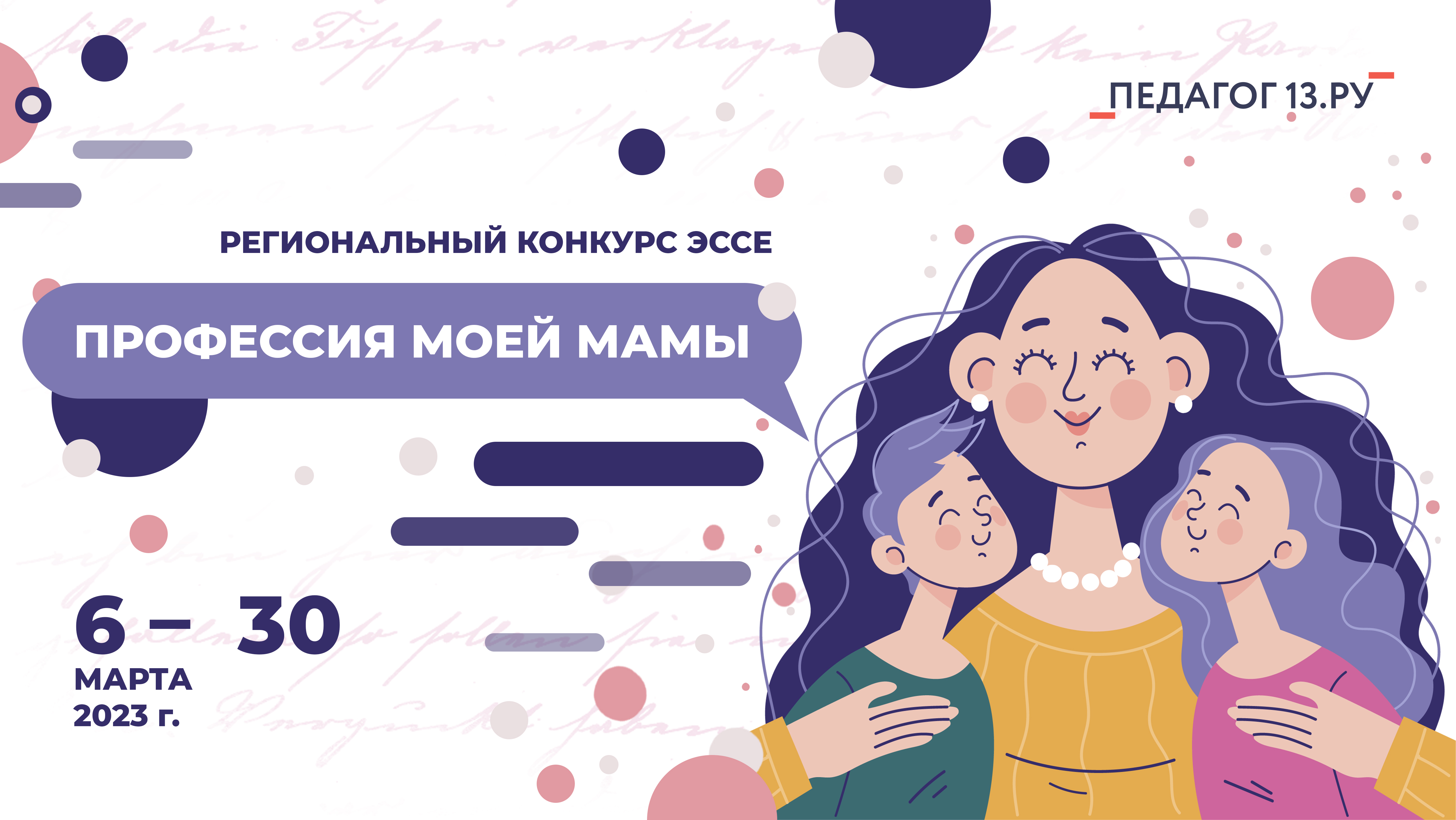 В рамках реализации мероприятий проекта «Успех каждого ребенка» в период, в преддверии Международного женского дня, ГБУ ДПО РМ «ЦНППМ «Педагог13.ру» запускает новый региональный конкурс эссе профориентационной направленности «Профессия моей мамы». Конкурс направлен на продвижения ценностей труда, семьи и семейных профессиональных традиций, создание мотивационной среды для успешного профессионального самоопределения обучающихся 1-11 классов (в том числе, обучающихся с ОВЗ) общеобразовательных организаций Республики Мордовия и детей-инвалидов. С условиями участия в Конкурсе, требованиями к конкурсным материалам и сроками их представления можно ознакомиться в положении.