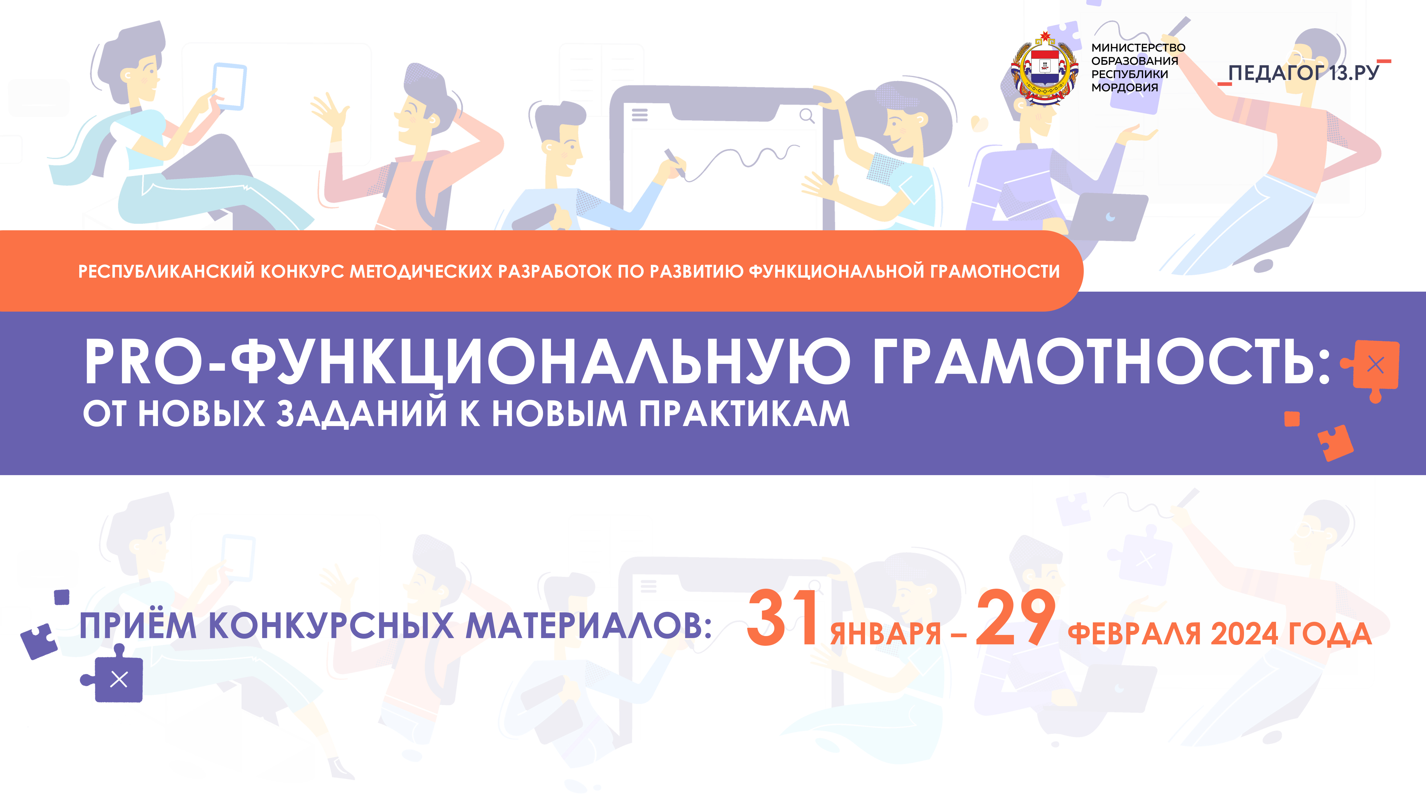 кафедра основного и среднего общего образования Центра непрерывного повышения профессионального мастерства педагогических работников «Педагог 13.ру» объявляет о старте Республиканского конкурса методических разработок по развитию функциональной грамотности обучающихся «PRO-функциональную грамотность: от новых заданий к новым практикам»,