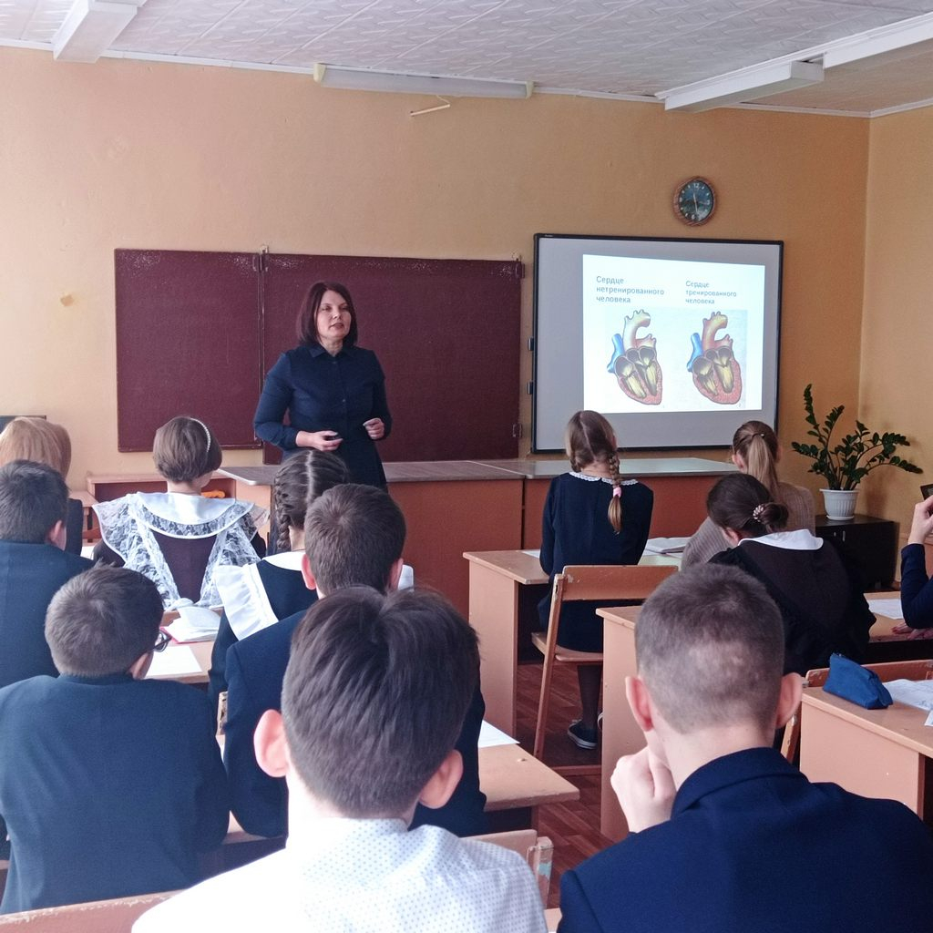 Учитель биологии Пинтяшкина Ольга Федоровна провела открытый урок по биологии с обучающимися 9 класса по теме «Гигиена сердечно-сосудистой системы». В рамках урока были поставлены проблемные задачи, решая которые, обучающиеся определили тему урока, а также, используя подготовленные учителем видеоматериалы и свой опыт, нашли и изучили информацию, раскрывающую тему урока. Для практического и осознанного восприятия учебного материала с помощью цифровой лаборатории по биологии обучающиеся познакомились с функциональными пробами, позволяющими выяснить степень тренированности своего сердца.