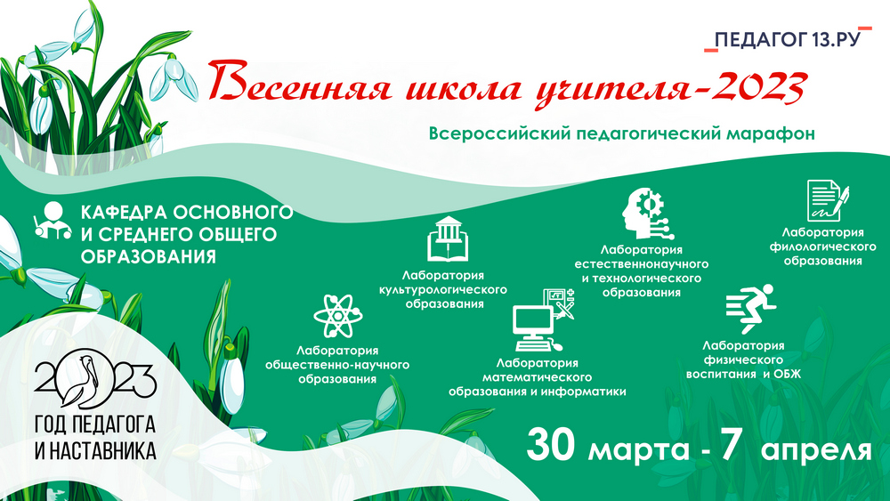 С 30 марта по 7 апреля 2023 года для педагогов, стремящихся найти новые решения для успешного воспитания и обучения детей, вновь распахнет свои двери Всероссийский педагогический марафон «Весенняя школа учителя – 2023», посвященный Году педагога и наставника.
