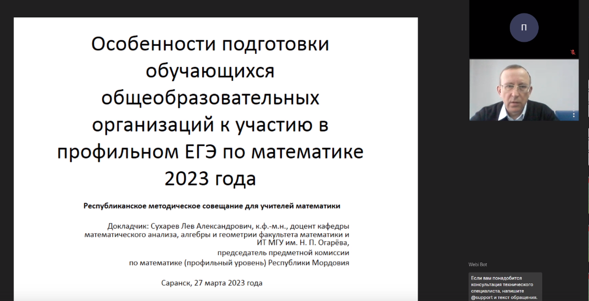 27 марта 2023 года на базе ГБУ ДПО РМ «Центр непрерывного повышения профессионального мастерства педагогических работников – «Педагог 13.ру» было проведено Республиканское методическое совещание для учителей математики «Особенности подготовки обучающихся общеобразовательных организаций к участию в ЕГЭ-2023 года по математике».