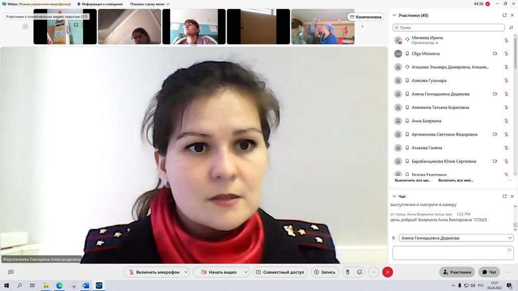 - формирование ценностей и культуры здорового и безопасного образа жизни детей в содержании деятельности классного руководителя (ведущий спикер: Жерноклеева Екатерина Александровна, старший лейтенант полиции, сотрудник Управления по контролю за оборотом наркотиков Министерства внутренних дел по Республике Мордовия).