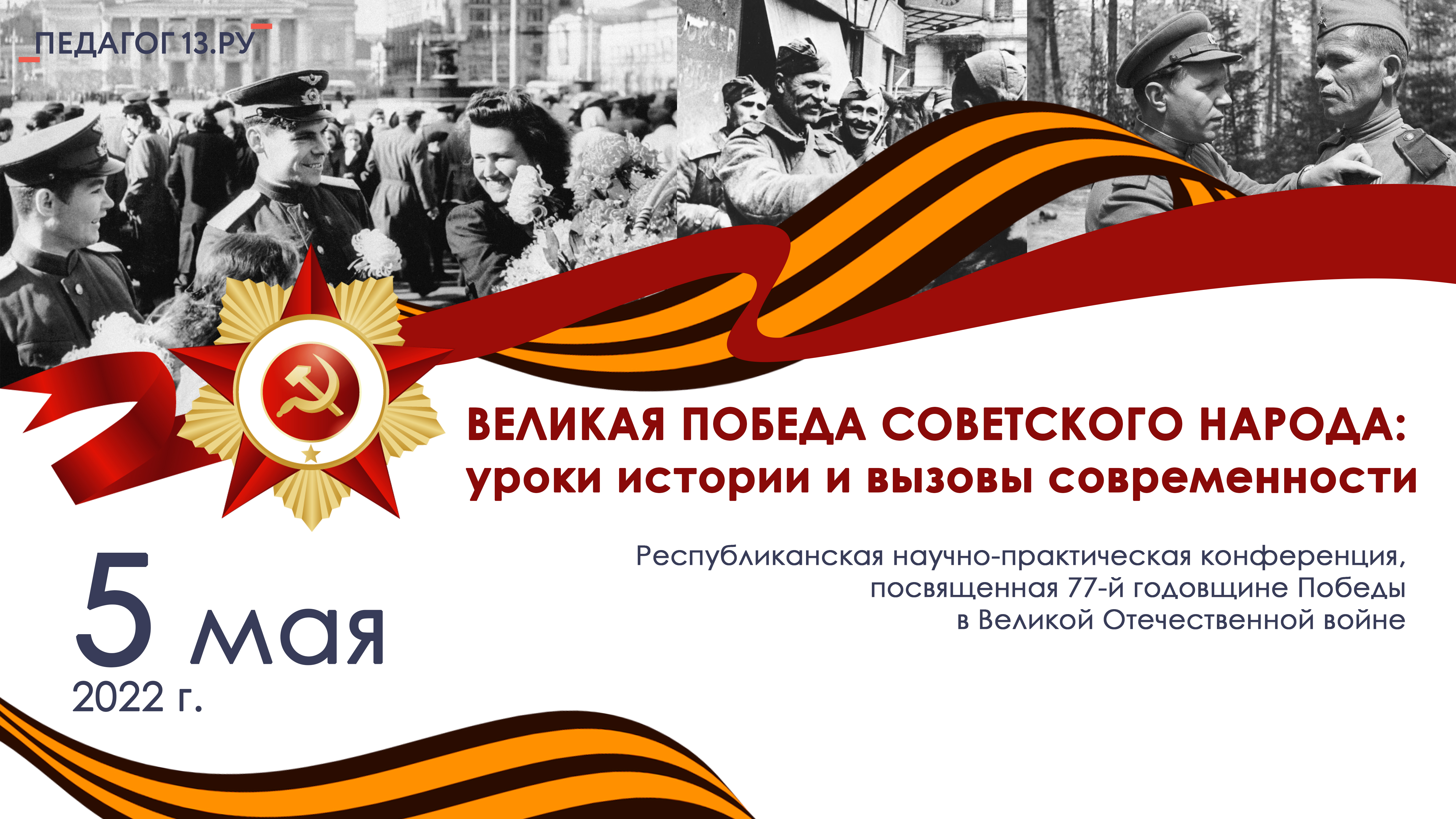 Центр непрерывного повышения профессионального мастерства – «Педагог 13.ру» 5 мая 2022 г. в 11.00 проводит Республиканскую конференцию, посвященной 77-й годовщине Победы в Великой Отечественной войне, «Великая Победа советского народа: уроки истории и вызовы современности».