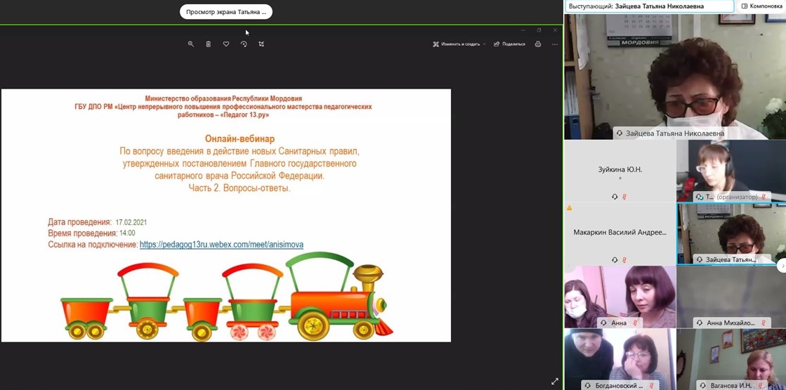 17 февраля 2021 года на площадке ЦНППМ «Педагог 13.ру» прошел второй онлайн-вебинар по вопросу введения в действие новых санитарно-эпидемиологических правил и норм (СанПиН), утвержденных постановлением Главного государственного санитарного врача Российской Федерации. Мероприятие организовано Министерством образования Республики Мордовия совместно с Управлением Роспотребнадзора по Республике Мордовия в составе цикла вебинаров по заявленной проблеме.